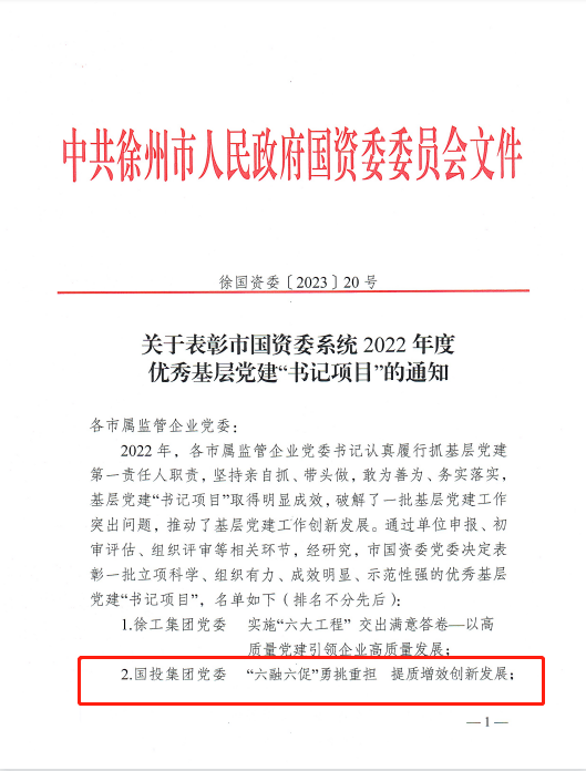近日,市國資委發(fā)布《關于表彰市國資系統(tǒng)2022年度優(yōu)秀基層黨建“書記項目”的通知》,集團公司黨委書記項目《“六融六促”勇挑重擔 提質(zhì)增效創(chuàng)新發(fā)展》獲評市國資系統(tǒng)2022年度優(yōu)秀基層黨建“書記項目”,這也是集團公司連續(xù)兩年獲得此項榮譽。2022年,集團公司黨委深入學習宣…