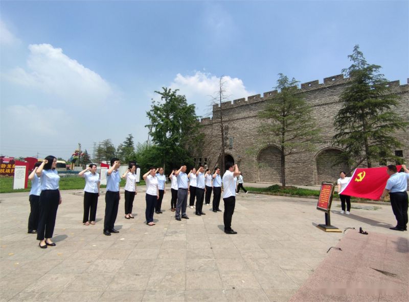 在運河支隊抗日烈士紀(jì)念碑前,全體黨員莊嚴(yán)肅立,舉行了悼念儀式,表達(dá)了對運河支隊抗日烈士的深切哀思。黨員代表帶領(lǐng)全體黨員面對黨旗莊嚴(yán)宣誓,重溫入黨誓詞,進(jìn)一步堅定共產(chǎn)黨員的決心和信念。