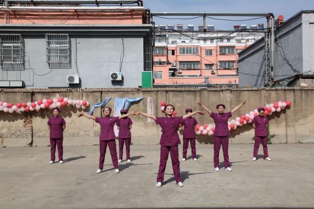 緊接著,令人期待的展示活動(dòng)正式拉開帷幕。14支代表隊(duì)化身為 “健康領(lǐng)操天團(tuán)”,依次步入展示場(chǎng)地中央。她們將傳統(tǒng)智慧與現(xiàn)代活力巧妙融合于健身操之中,用靈動(dòng)的舞姿、燦爛的笑容和充滿韻律的跳動(dòng),把科室特色完美融入古法減脂操,以多樣的運(yùn)動(dòng)風(fēng)格,生動(dòng)展現(xiàn)了團(tuán)隊(duì)團(tuán)結(jié)協(xié)作、積極向上的精神風(fēng)貌。這場(chǎng)精彩絕倫的表演,不僅讓大家看到了白衣天使在工作中守護(hù)健康的專業(yè)形象,更領(lǐng)略到她們用運(yùn)動(dòng)傳遞快樂的別樣魅力。表演結(jié)束后,現(xiàn)場(chǎng)觀眾熱情高漲,紛紛加入到古法減脂操的跳動(dòng)行列,將活動(dòng)氛圍推向高潮。此外,一位白衣天使還現(xiàn)場(chǎng)獻(xiàn)唱歌曲《愛的路上千萬里》,用歌聲向所有護(hù)士姐妹送上節(jié)日祝福與崇高敬意。