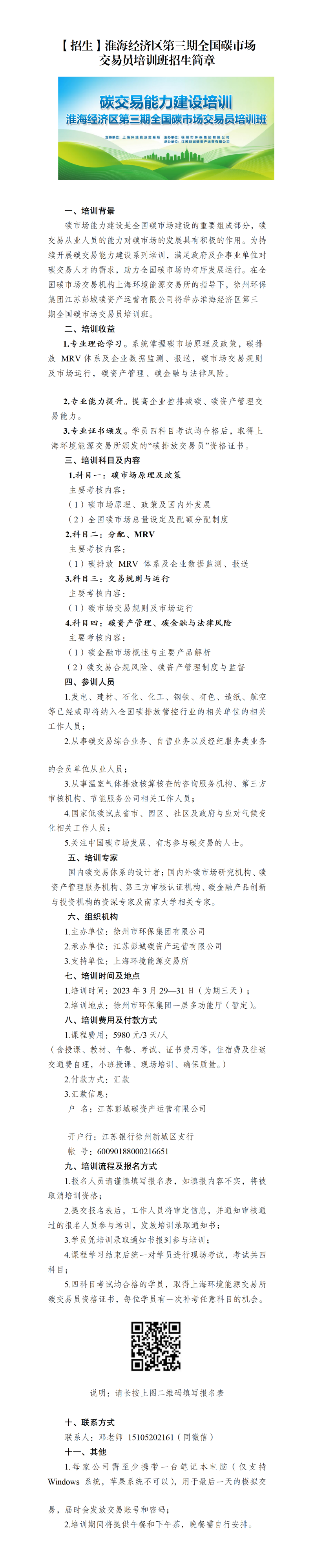【招生】淮海經濟區(qū)第三期全國碳市場交易員培訓班招生簡章