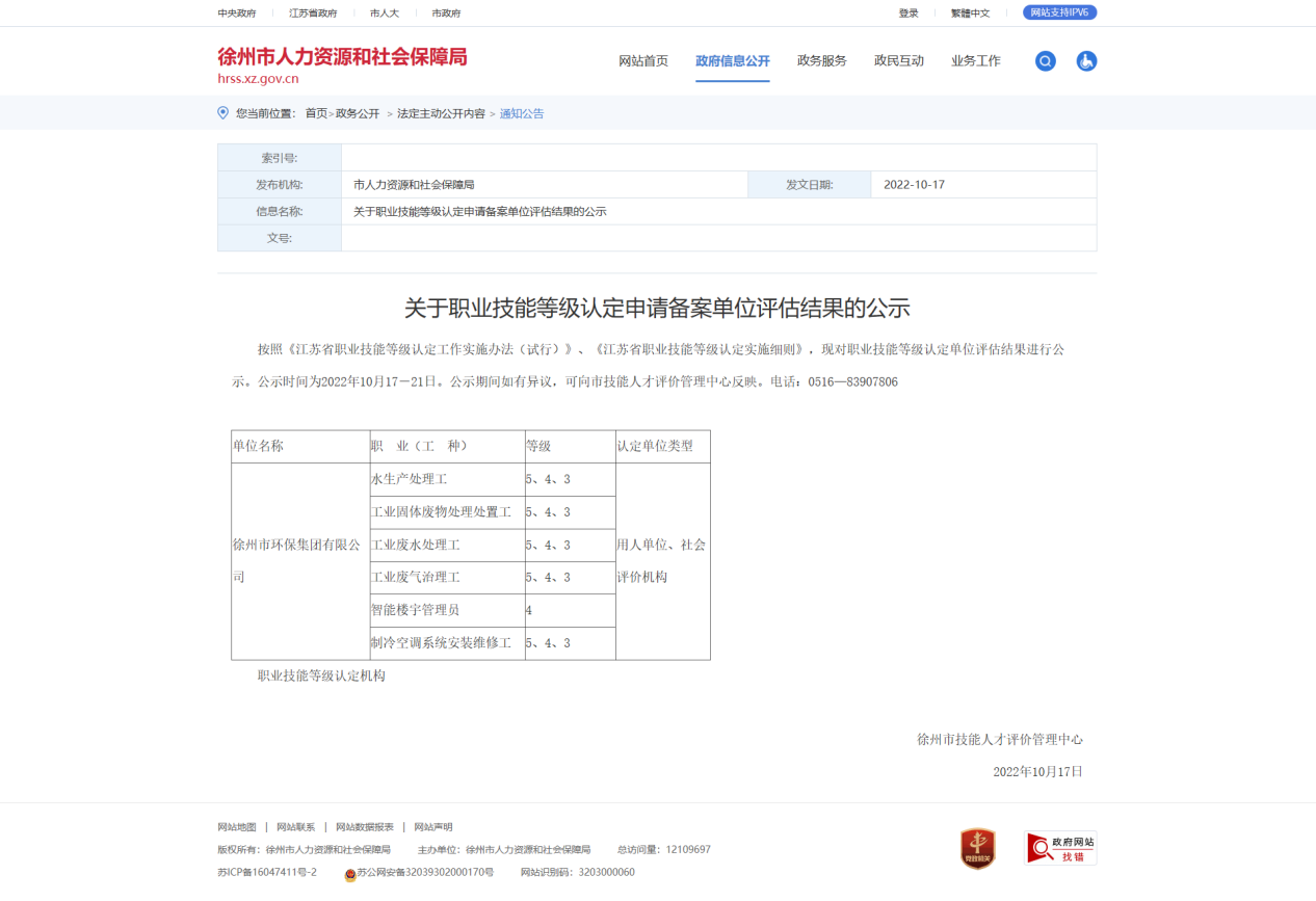 近日,江蘇技能人才評(píng)價(jià)服務(wù)網(wǎng)公布了職業(yè)技能等級(jí)認(rèn)定機(jī)構(gòu)(面向社會(huì))名單,徐州市環(huán)保集團(tuán)評(píng)價(jià)中心作為徐州市本級(jí)職業(yè)技能等級(jí)認(rèn)定機(jī)構(gòu)位列其中,公示備案職業(yè)(工種)和等級(jí)為水生產(chǎn)處理工:5、4、3;工業(yè)固體廢物處理處置工:5、4、3;工業(yè)廢水處理工:5、4、3;工業(yè)廢氣治理工:5、4、3;智能樓宇管理員:4;制冷空調(diào)系統(tǒng)安裝維修工:5、4、3。