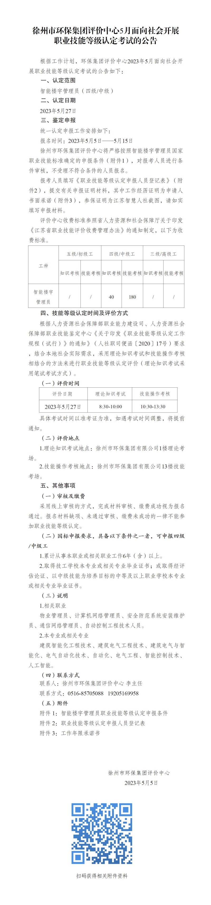 考試公告|徐州市環(huán)保集團評價中心5月面向社會開展職業(yè)技能等級認定考試的公告