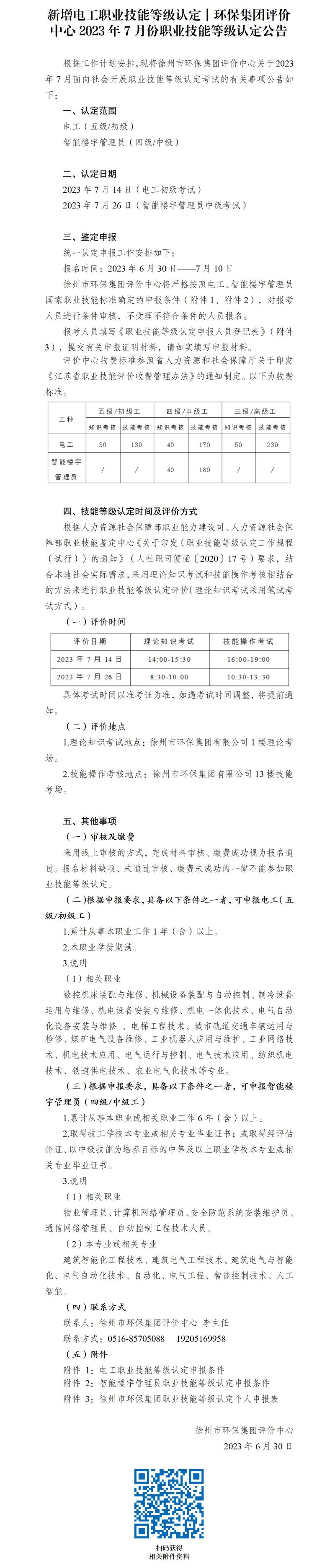 新增電工職業(yè)技能等級認(rèn)定 | 環(huán)保集團評價中心2023年7月份職業(yè)技能等級認(rèn)定公告