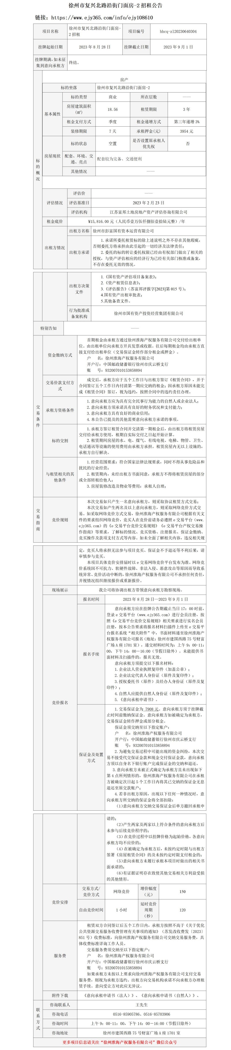徐州市復(fù)興北路沿街門(mén)面房-2招租公告