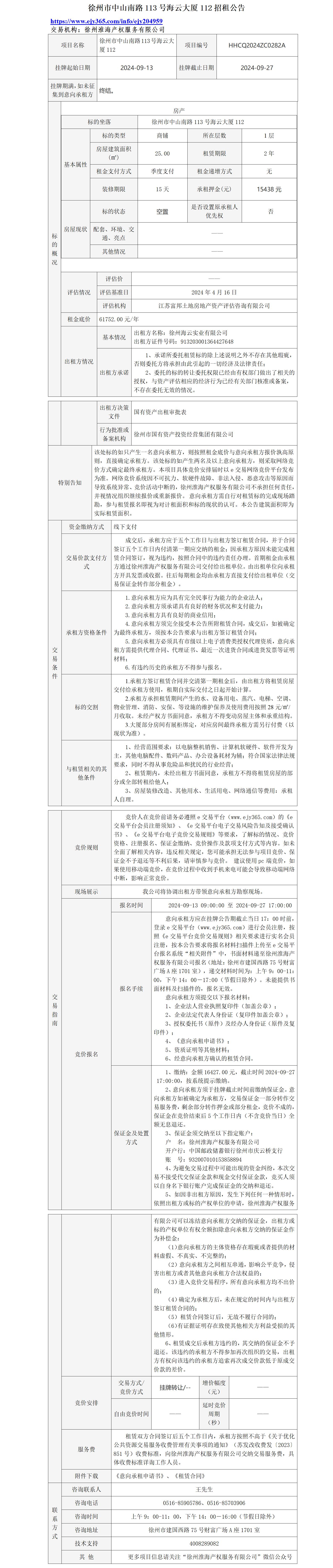 徐州市中山南路113號海云大廈112招租公告