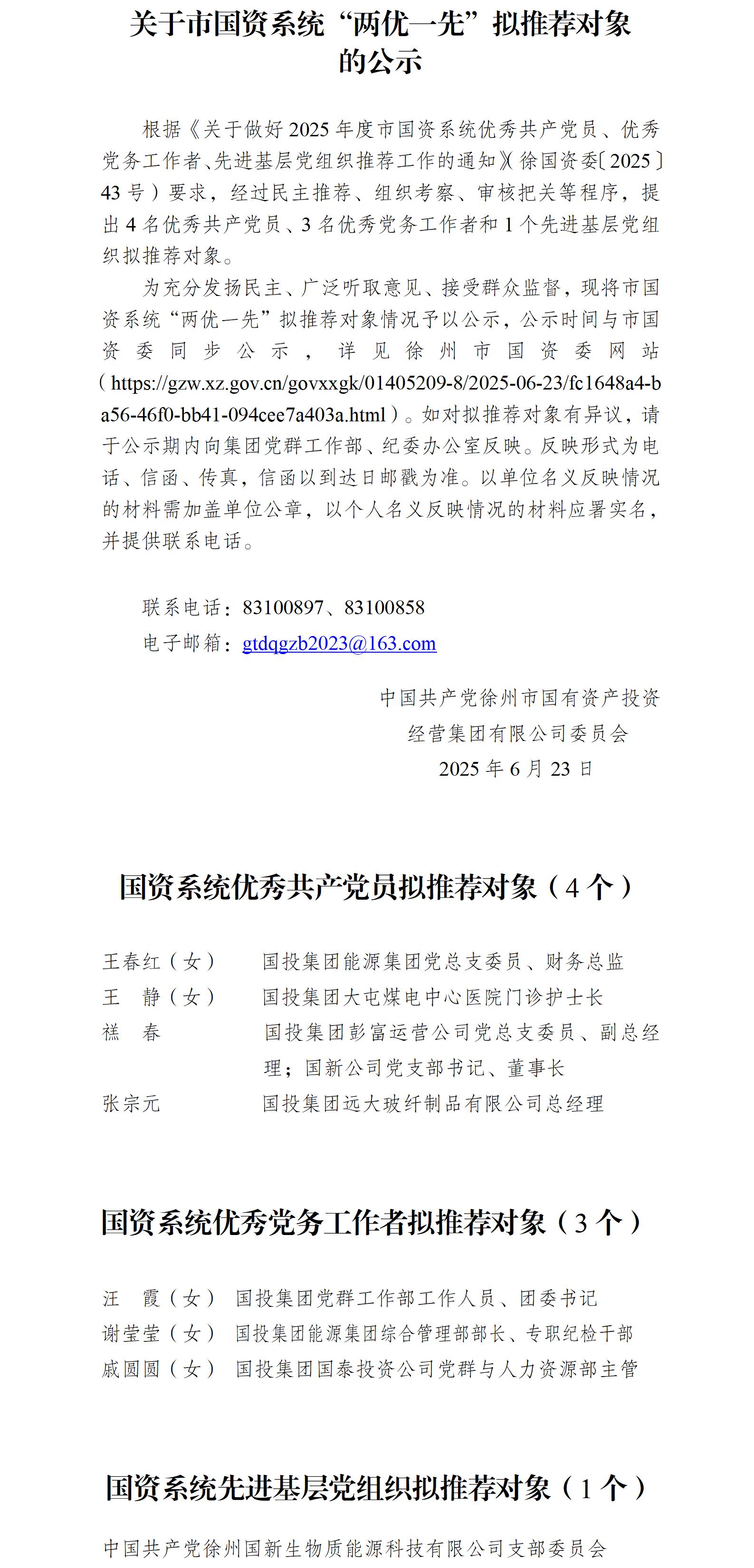 關(guān)于市國資系統(tǒng)“兩優(yōu)一先”擬推薦對象的公示