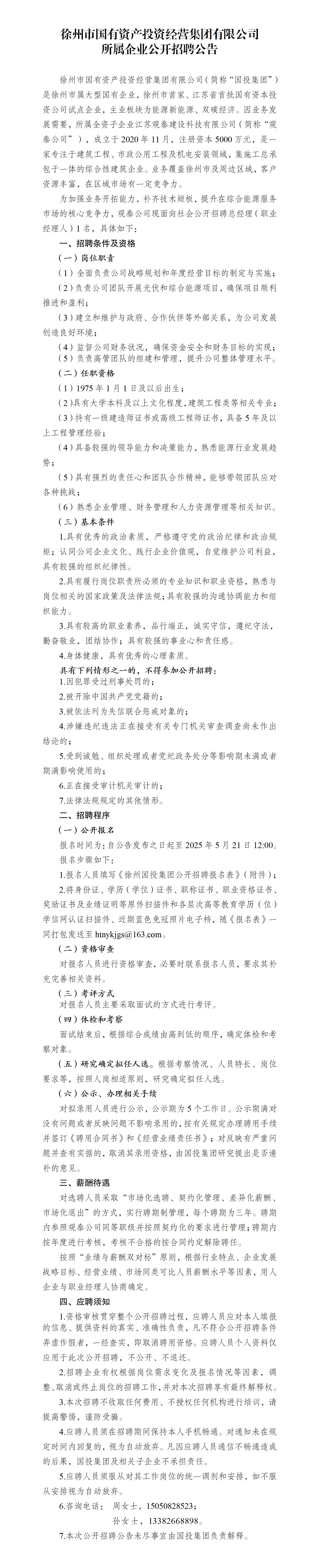 徐州市國(guó)有資產(chǎn)投資經(jīng)營(yíng)集團(tuán)有限公司所屬企業(yè)公開招聘公告(國(guó)爍公司)