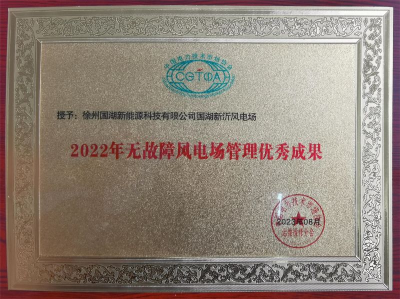 國湖新沂風(fēng)電場榮獲“2022年無故障風(fēng)電場管理優(yōu)秀成果”獎項