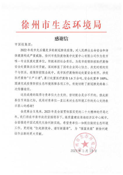 市生態(tài)環(huán)境局對(duì)國(guó)投集團(tuán)為抗擊疫情作出的貢獻(xiàn)表示感謝