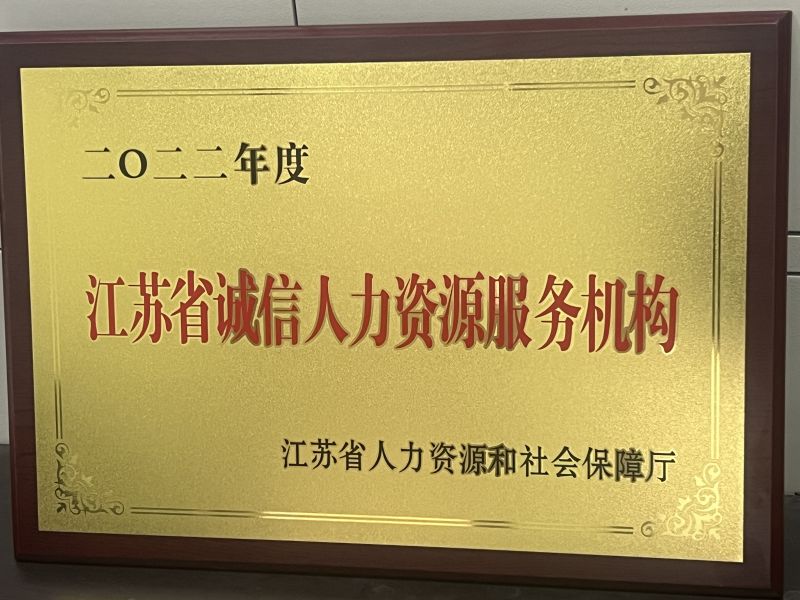 勞代公司榮獲“全省誠信人力資源服務機構”稱號