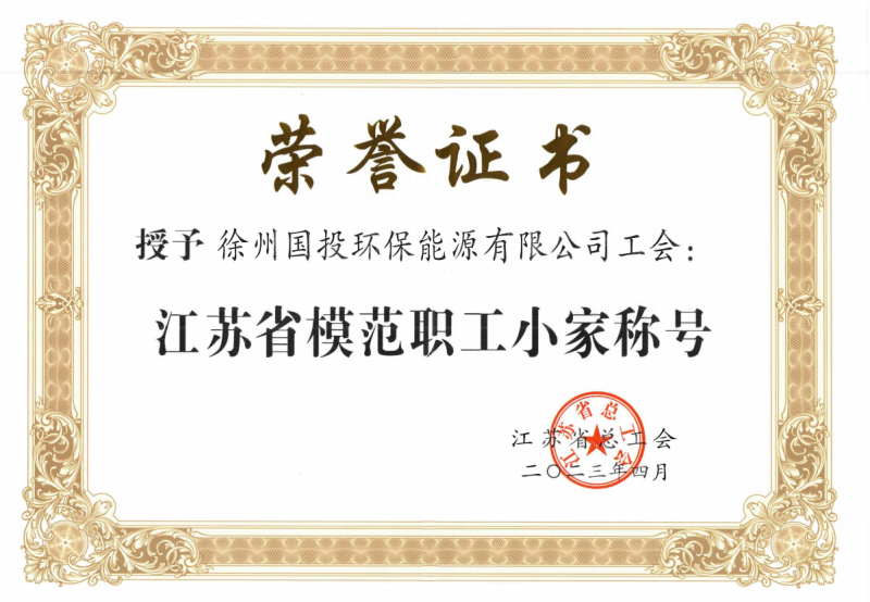 國投環(huán)能公司工會榮獲“江蘇省模范職工小家”榮譽稱號