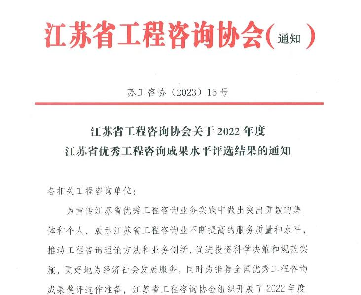喜訊!工程咨詢中心5項咨詢成果榮獲江蘇省優(yōu)秀咨詢成果獎