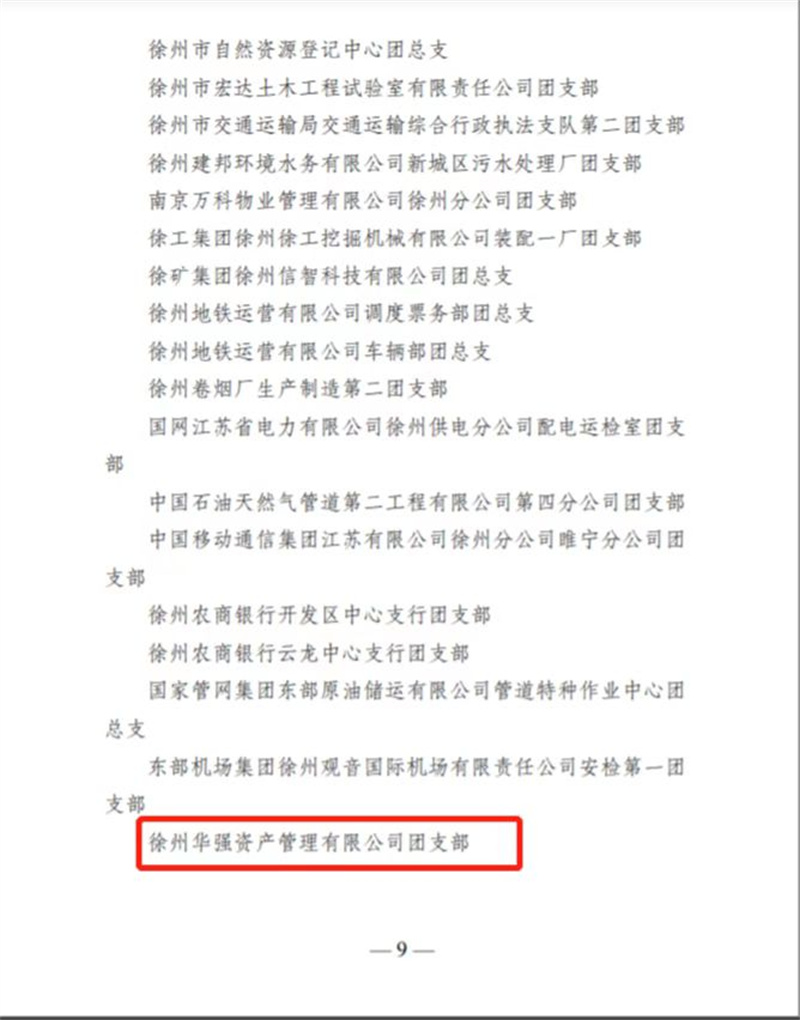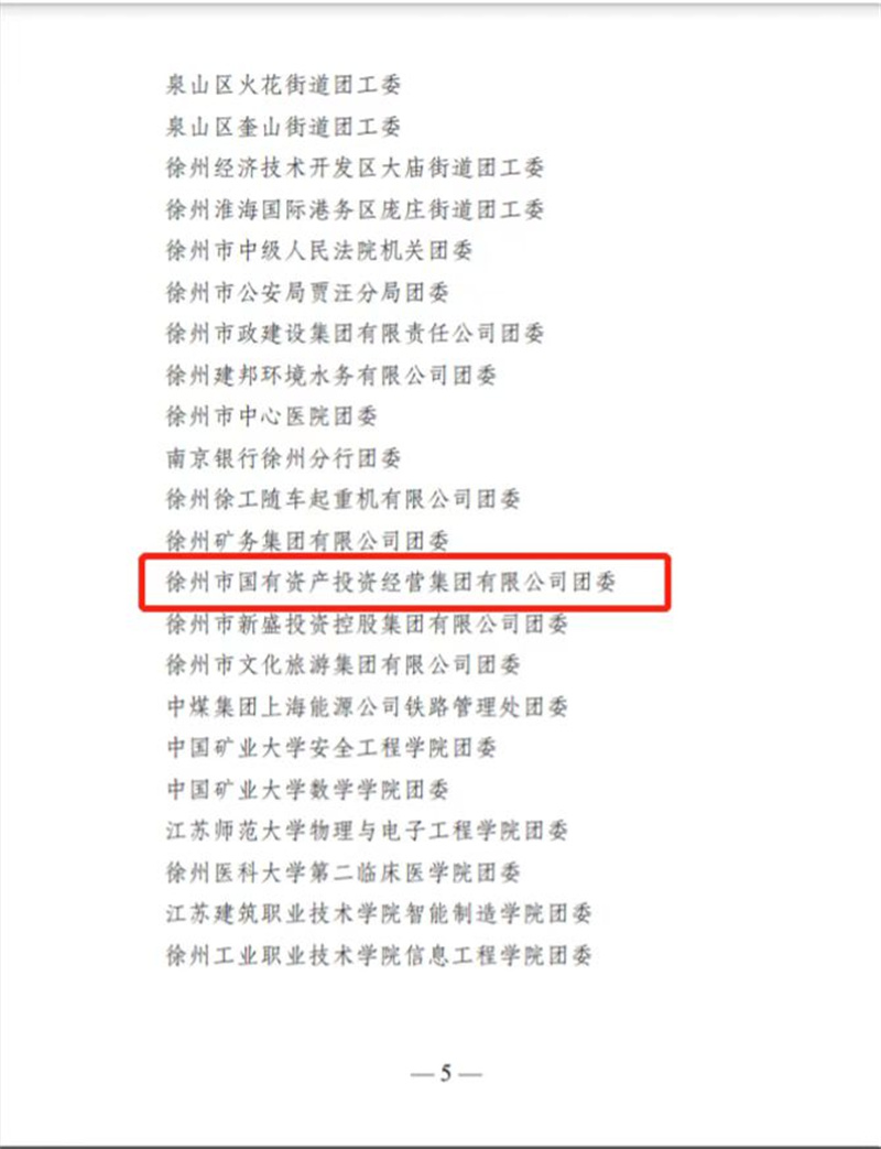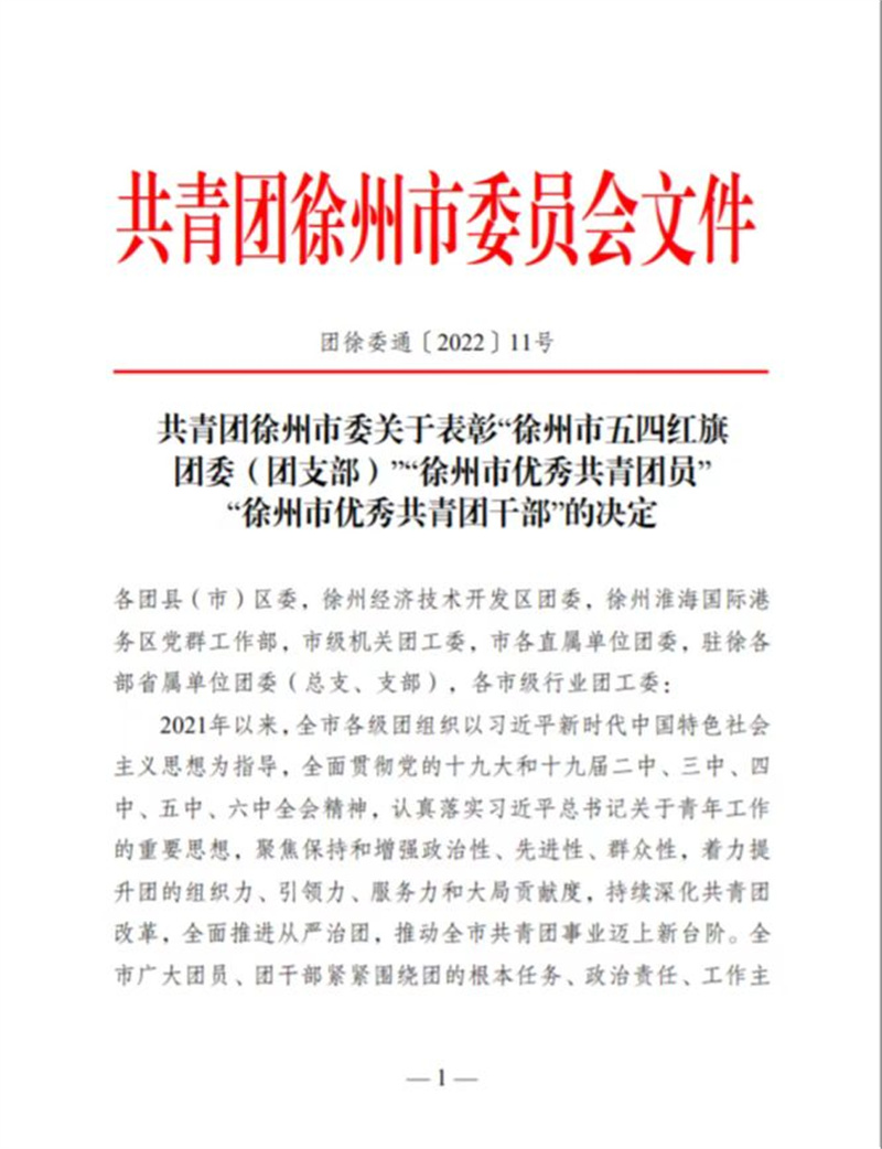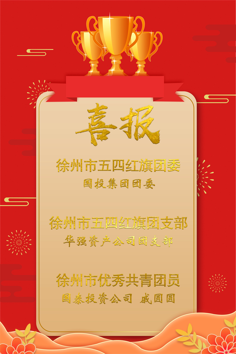 2022年是黨的二十大召開之年,也是中國(guó)共青團(tuán)成立100周年。近日,共青團(tuán)徐州市委對(duì)各級(jí)團(tuán)組織及個(gè)人作出表彰。其中,國(guó)投集團(tuán)團(tuán)委榮獲“五四紅旗團(tuán)委”稱號(hào)、華強(qiáng)資產(chǎn)公司團(tuán)支部榮獲“五四紅旗團(tuán)支部”稱號(hào),國(guó)泰投資公司戚圓圓同志榮獲“優(yōu)秀共青團(tuán)員”稱號(hào)。