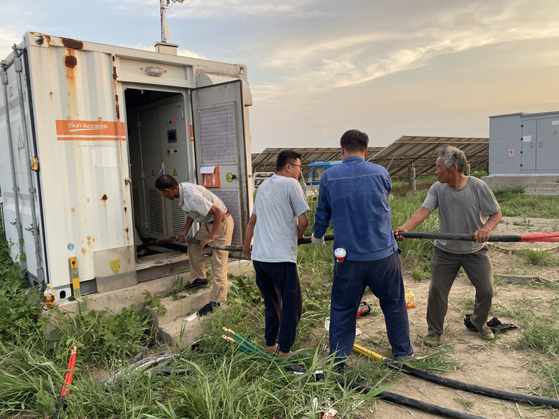 6月26日上午8時(shí),沛縣國(guó)源光伏電力有限公司現(xiàn)場(chǎng)運(yùn)維人員一早便頂著高溫天氣在現(xiàn)場(chǎng)進(jìn)行檢查,突然發(fā)現(xiàn)監(jiān)控后臺(tái)有一臺(tái)逆變器由于漏電保護(hù)響起了報(bào)警聲,現(xiàn)場(chǎng)的運(yùn)維人員立即前去現(xiàn)場(chǎng)進(jìn)行檢測(cè),初步判定為逆變器與變壓器中間段電纜損壞。運(yùn)維人員立即向領(lǐng)導(dǎo)匯報(bào)并著手準(zhǔn)備電纜的更換工作。由于更換電纜需向供電公司申請(qǐng)生產(chǎn)區(qū)線路高壓側(cè)停電,同時(shí)為了減少白天的發(fā)電損失,運(yùn)維人員于當(dāng)天下午6點(diǎn)半申請(qǐng)高壓側(cè)停電并進(jìn)行電纜更換工作,經(jīng)過連續(xù)3個(gè)小時(shí)緊急施工,于當(dāng)晚9點(diǎn)半就完成了電纜的更換,又過了10分鐘送電完成,恢復(fù)生產(chǎn)正常。