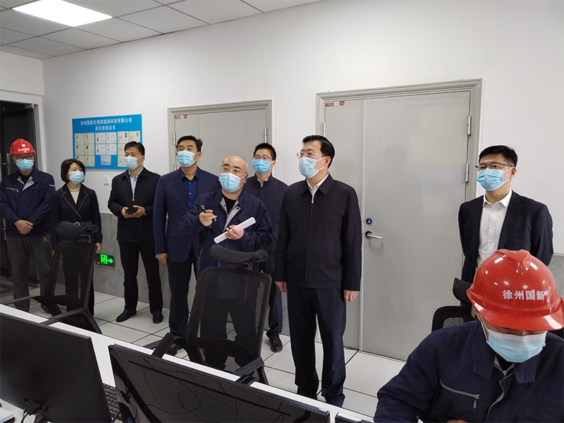 10月10日上午,市國(guó)資委黨委書(shū)記、主任、沛縣縣委書(shū)記丁廣州,沛縣副縣長(zhǎng)、安國(guó)鎮(zhèn)黨委書(shū)記朱成一行到徐州國(guó)新生物質(zhì)能源科技有限公司(以下簡(jiǎn)稱“國(guó)新公司”)投資建設(shè)的沛縣有機(jī)廢棄物處理中心調(diào)研。集團(tuán)公司黨委書(shū)記、董事長(zhǎng)王鵬,黨委委員、副總經(jīng)理王濤一同參加調(diào)研。