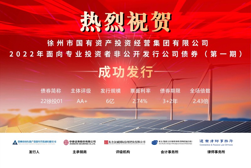 本期公司債發(fā)行是徐州國投集團(tuán)在資本市場的首次亮相,2.74%的票面利率創(chuàng)下了近年來全國AA+主體3年期及以上私募公司債券發(fā)行利率新低;同時亦是非公開信用類債券發(fā)行利率歷史最低記錄。此次發(fā)行獲得市場投資者踴躍認(rèn)購,全場認(rèn)購倍數(shù)達(dá)2.43倍。