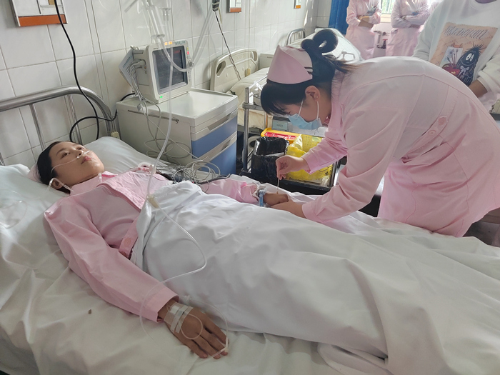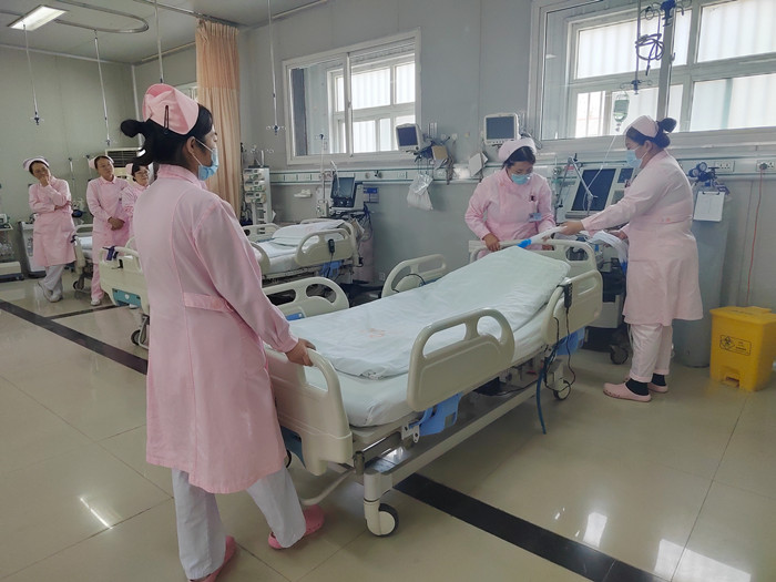 重癥醫(yī)學科模擬呼吸機發(fā)生氧氣供應不足出現(xiàn)報警,無法正常工作的場景。當班護士即刻檢查儀器,此時患者血氧飽和度正在下降,立即呼叫醫(yī)生和另一名護士進行緊急處理,遵醫(yī)囑立即脫機,連接備用氧氣瓶及簡易呼吸器進行輔助通氣,之后患者血氧飽和度上升,生命體征逐漸平穩(wěn)。隨后上報護士長,聯(lián)系后勤保障部進行檢查維修,并上報不良事件。骨科應急預案演練主要模擬責任護士在巡回病房時,發(fā)現(xiàn)正在輸血的患者突然出現(xiàn)寒戰(zhàn)癥狀的場景。責任護士立即停止輸血并更換了輸血袋及輸血器,通知值班醫(yī)生和護士長,緊急啟動輸血反應應急預案,并上報不良事件。演練結(jié)束后護理部、護士長及護理骨干對應急預案程序、制度落實、操作規(guī)范、人文關懷等方面進行綜合評價。