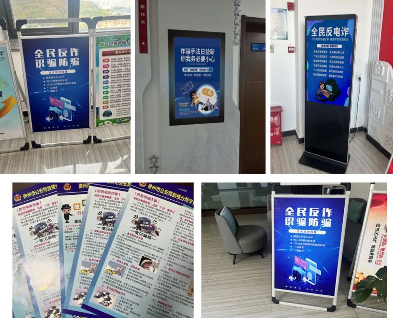 濃厚宣傳氛圍。建立反詐宣傳陣地,各企業(yè)在職工食堂、電梯口、宣傳櫥窗等多個陣地張貼反詐海報、播放反詐宣傳標(biāo)語,,積極構(gòu)建全方位、多層次、多形式、多渠道的宣傳格局,最大限度擠壓電信網(wǎng)絡(luò)詐騙犯罪活動空間。