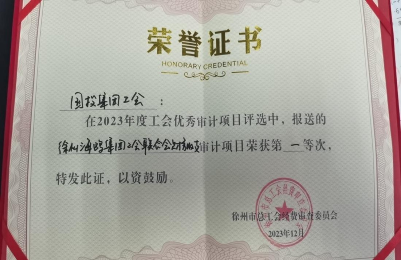 為進一步強化工會經(jīng)審組織監(jiān)督職能,規(guī)范工會審計行為,切實提升工會審計質(zhì)量,市總工會經(jīng)審會開展2023年度工會優(yōu)秀審計項目評選工作,并于近日公布了2023年度工會優(yōu)秀審計項目評選結(jié)果,國投集團選送的審計項目“徐州海鷗集團工會聯(lián)合會財務(wù)收支”榮獲第一等次。