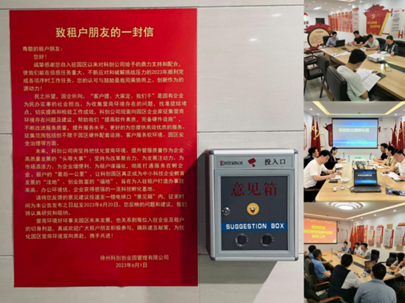 優(yōu)化軟環(huán)境,為客戶安心發(fā)展保駕護航。為使科創(chuàng)園區(qū)真正成為中小科技企業(yè)孵育發(fā)展的“洼地”、創(chuàng)業(yè)致富的“福地”,科創(chuàng)公司成立營商環(huán)境領(lǐng)導(dǎo)小組,在園區(qū)醒目位置張貼《致租戶朋友的一封信》、面向園區(qū)客戶開展“零距離”走訪座談,切實找準改革發(fā)展堵點痛點,徹底打通服務(wù)在孵企業(yè)、租戶的“最后一公里”;近日,龍年新春來臨之際,又開展了“龍年步步高 一起‘開門紅’”客戶聯(lián)誼活動,以“?!睘槊?、袋袋傳愛,一份份福袋裝滿春聯(lián)、紅包、窗花,紅火喜慶、年味十足;以花為媒、朵朵暖心,一盆盆鮮花姹紫嫣紅、寓意吉祥,收獲了客戶的一致好評??苿?chuàng)公司以優(yōu)化營商軟環(huán)境,增強發(fā)展硬實力,旨在全力下好先手棋,確保龍年開門紅。
