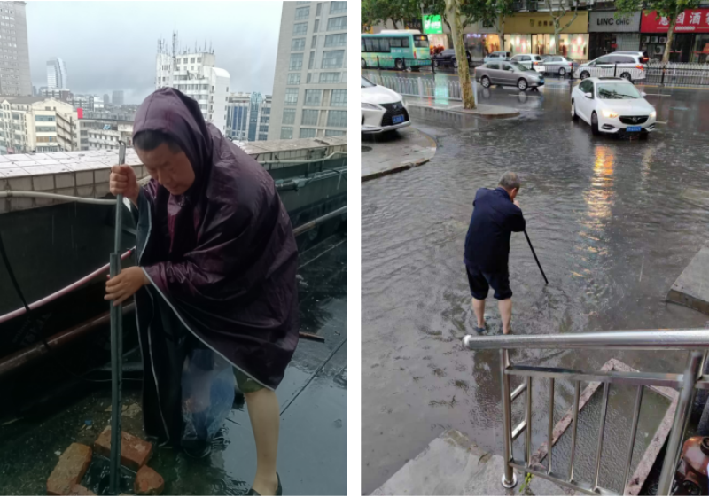 大雨導致旭鵬公司、國聯(lián)科公司、中山路50號及戲馬臺商廈等房產(chǎn)屋面和庫房積水嚴重,屋面水位急速上升,帶來嚴重安全隱患。輕資產(chǎn)人員立即啟動防汛應急預案,在風雨中緊急增加水泵排水、疏通下水道、清理各處積水,全力保障了公司設施設備安全,避免業(yè)主財物受損。