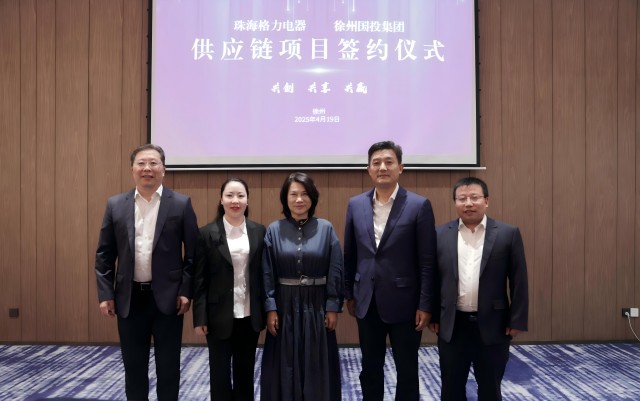 4月19日,徐州國投集團與珠海格力電器合作供應鏈項目簽約儀式在徐州舉行。珠海格力電器股份有限公司董事長兼總裁董明珠、投資總顧問沈勇,格力電器江蘇公司總經理甄寧、浙江格力新能源有限公司總經理葉飛,徐州市委常委、銅山區(qū)委書記、徐州高新區(qū)黨工委書記龔維芳,銅山區(qū)區(qū)委副書記、區(qū)長于帆,徐州國投集團黨委書記、董事長孟光,黨委委員、副總經理王濤出席簽約儀式。