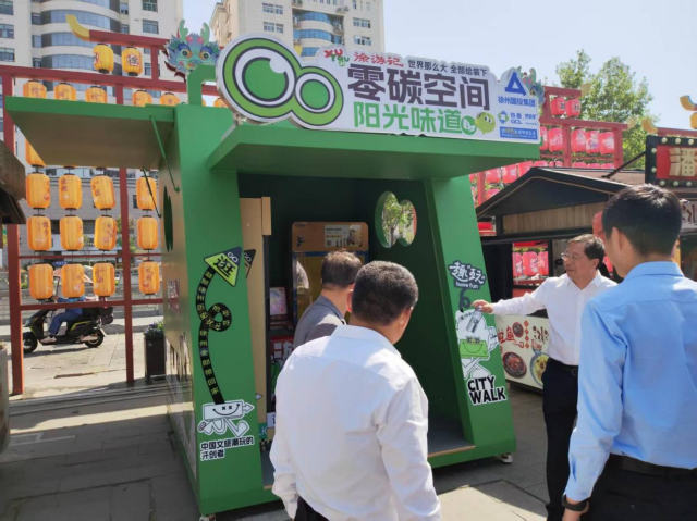 小屋內(nèi),文創(chuàng)產(chǎn)品展示區(qū)、自動販?zhǔn)蹤C等功能模塊已調(diào)試完畢,計劃在五一期間推出各類文創(chuàng)特色商品,通過“零碳空間+文創(chuàng)消費”場景化體驗,吸引游客深度參與。孟光拿起一款文創(chuàng)鑰匙扣向彭城投資公司負責(zé)人問到:“這些特色商品的供應(yīng)鏈準(zhǔn)備如何?有沒有考慮線上線下聯(lián)動?”項目團隊回應(yīng),五一期間將同步開啟 “零碳空間直播間”。孟光指出:“要抓住文旅熱潮,讓零碳空間成為游客‘打卡即消費、體驗即傳播’的新觸點?!?