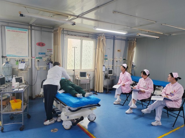 不同于單項技能比武,本次OSCE考核最大的特點是高度模擬臨床真實情境,強調(diào)工作的連貫性和應(yīng)急判斷能力。考核分為三站,環(huán)環(huán)相扣。第一站,護士化身為洞察入微的“偵察兵”,在有限時間內(nèi),面對由專業(yè)人員扮演的“標(biāo)準(zhǔn)化病人”,進行詳細的病史采集和精準(zhǔn)的身體評估,此站考驗了護士的溝通技巧和觀察能力;第二站,護士化身為精準(zhǔn)高效的“戰(zhàn)術(shù)家”,基于第一站的評估結(jié)果迅速提出核心護理問題,并立即采取相應(yīng)的護理措施;第三站,護士化身為沉著果敢的“突擊隊”,面對患者病情驟然惡化,第一時間識別危急值,果斷采取心肺復(fù)蘇、急救用藥等緊急救治措施。這一站是考核的重中之重,直接檢驗護士在壓力下的心理素質(zhì)、快速反應(yīng)能力和搶救技能。